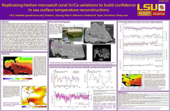 Ouellette, G., 2016: Coral Historians and Cave Libraries: Carbonate Stories of Environmental Change. Southern Cross Country Club Monday Reef Talk Series, Little Cayman Island